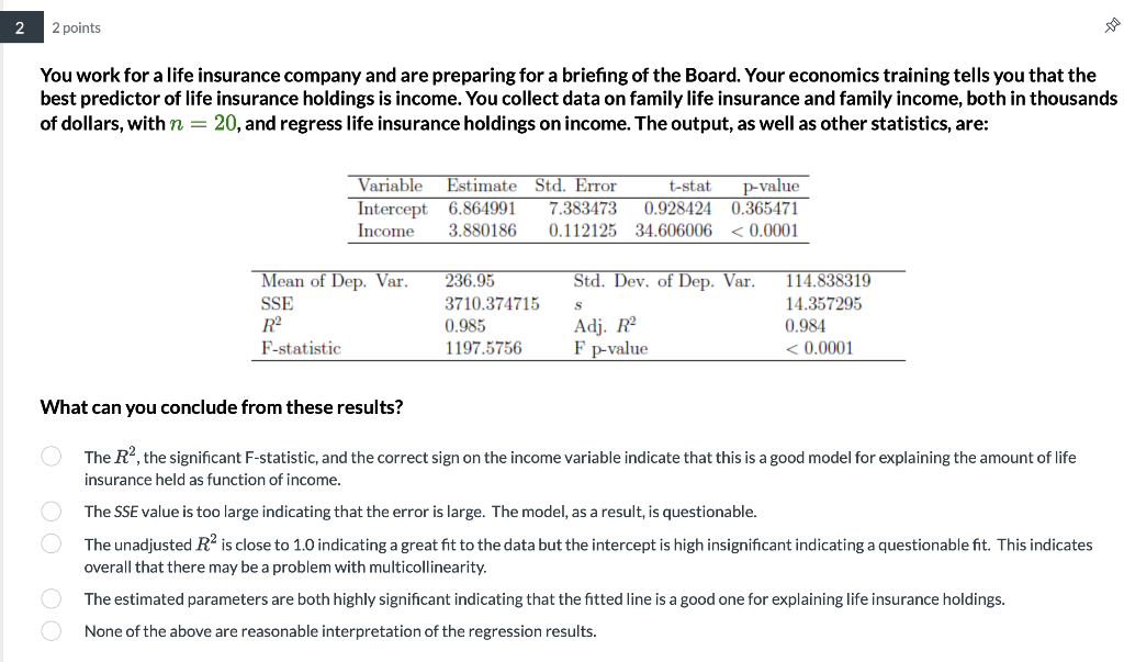 Solved 2 2 Points You Work For A Life Insurance Company And Chegg Com